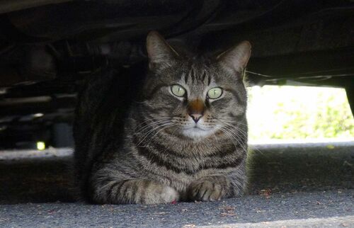 どうも、クロトラです。 今、車の下に潜って、張り込み中です。 犯人確保のため!!! にしても、腹減ったなぁ・・・・・ おっと!!いかんいかん!!! 真面目に張り込みせんと。