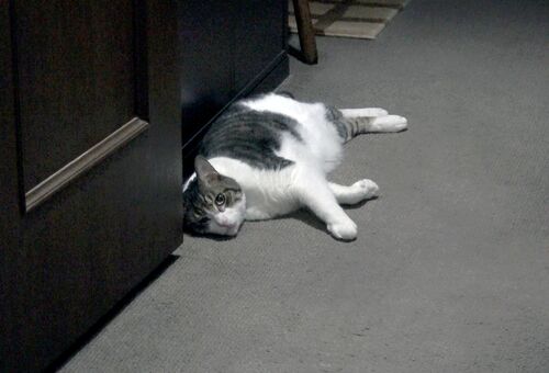 ふと見ると、廊下に・・・・・ ミィ「だって、疲れちゃったんだもん!!」 さっきまで、ジタバタ走り回っていたからねぇ エネルギーを消耗したのなら、きちんとエネルギー補給(ご飯)、しないとね。 最近、いつもの半分しか食べないんだから・・・・。 ま、…