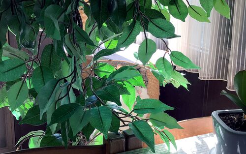 椅子に座って、ゆっくりしていると・・・・ When I sit down and relax...... 視線を感じる。 I feel someone's gaze. ミィ「何か他人に見られてはいけないことでもしてるんですか?」 Mie:Are you doing something that should not be seen by others? いえ…