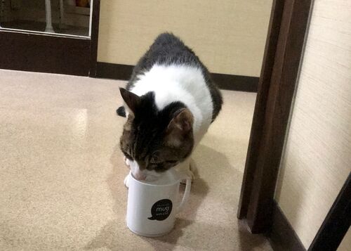 前は水飲み場は特定の場所だったけど・・・・ Mie used to use a specific place for drinking fountains... 最近はどこでもよくなったみたい。 Lately, he seems to have started using things from everywhere. ミィ「何?」 Mie:Do you need something? …