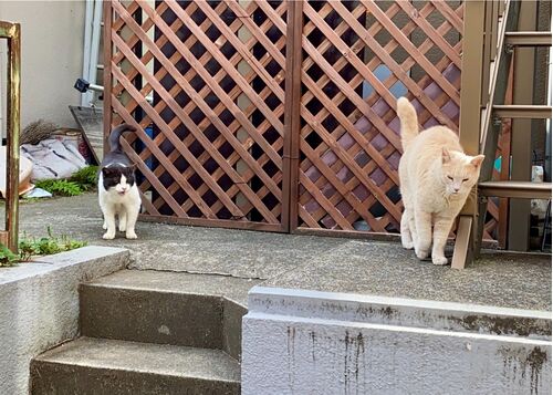 黒八君と茶々丸君が結構近くにいるのに、威嚇しない。 Even though Kurohachi and Chachamaru are quite close, they don't act intimidating. ようやく仲良くなってきたのかな? Are they finally getting along?