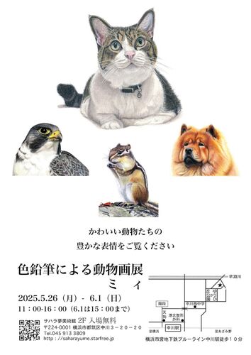 もう5月 5/26より、横浜市都筑区中川にある「サハラ夢美術館< https://saharaart.stars.ne.jp/>にて動物画展を開催します。 Today marks the start of May. From May 26th, an animal painting exhibition will be held at the Sahara Dream Museum in …